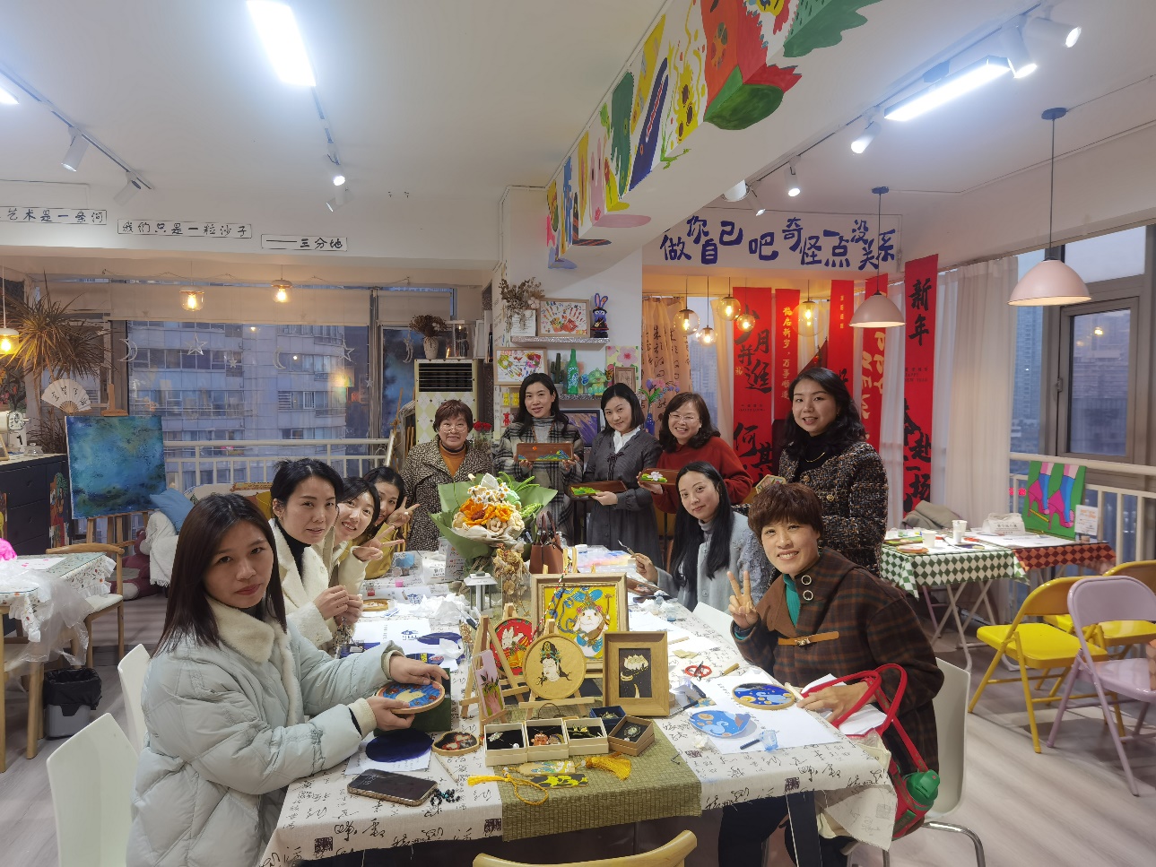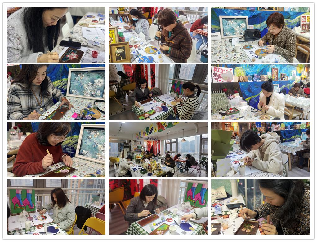 掐丝珐琅工艺是我国首批非物质文化遗产,本次制作的掐丝珐琅沙画是在借鉴了传统的景泰蓝(珐琅)工艺中的掐丝、点蓝等工序的技术特点上而创新的景泰蓝平面画,是在传统工艺基础上研究改进而成的一种新型工艺品装饰画。活动现场,大家在专业老师的指导下,亲手挑选色彩、设计图案,一丝不苟地进行掐丝、点蓝、封干,互相交流心得、分享作品,体验着传统文化的独特魅力。
