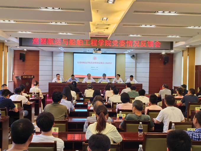 5月17日,公司党委第六轮巡察组在明德楼208会议室召开巡察航运与船舶工程公司党委情况反馈会。公司党委书记宫辉,公司党委常委、副董事长王平义,公司党委第六轮巡察组组长邵旭平、副组长罗丙军,公司党政办(党委巡察办)副主任苗国厚以及第六轮巡察组全体成员,太阳成集团tyc33455领导班子成员、全体教职工及员工代表参加会议。会议由副董事长王平义主持。