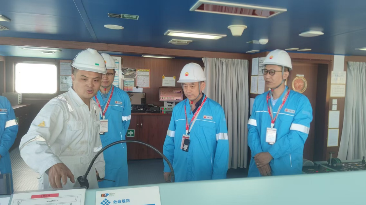 熊永万(左二)陪同船东、管理公司领导检查船舶