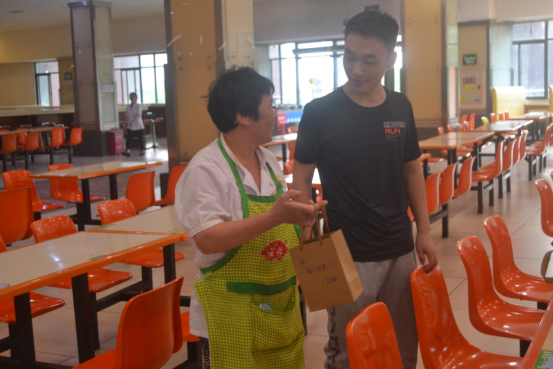 随后,同学们在食堂工作人员的帮助下,将包好的粽子煮熟。大家分成3个小组,亲自将打包好的粽子送到公司后勤叔叔阿姨手中,对他们节假日仍坚守工作岗位的辛勤付出表示感谢,并为他们送上了端午节的问候和祝福。