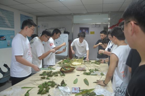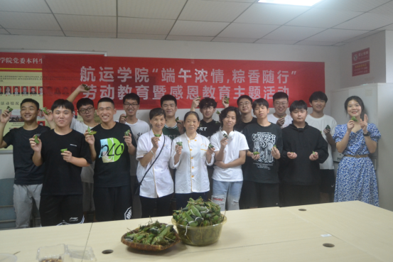 端午节当天,科学城校区9栋员工活动室,航运学子一大早就忙碌了起来,在食堂阿姨耐心讲解和手把手指导下,大家一起动手折粽叶、填糯米、放馅料、裹粽子、绑扎线,互相交流学习,共话端午习俗,用一双双灵巧的手包出一个个充满爱心的粽子。虽然大小不同,形态各异,但每一个粽子都蕴含着收获的味道,大家享受着自己劳动的成果,脸上洋溢着幸福的微笑。