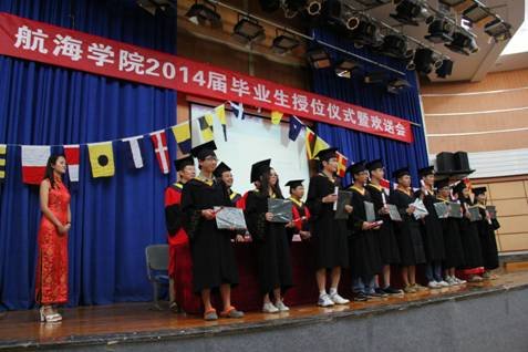 随后授位仪式开始,雷林书记宣读了获得学士学位的人员名单,公司导师向航海公司2014届毕业生颁发了毕业证书和学士学位证书。