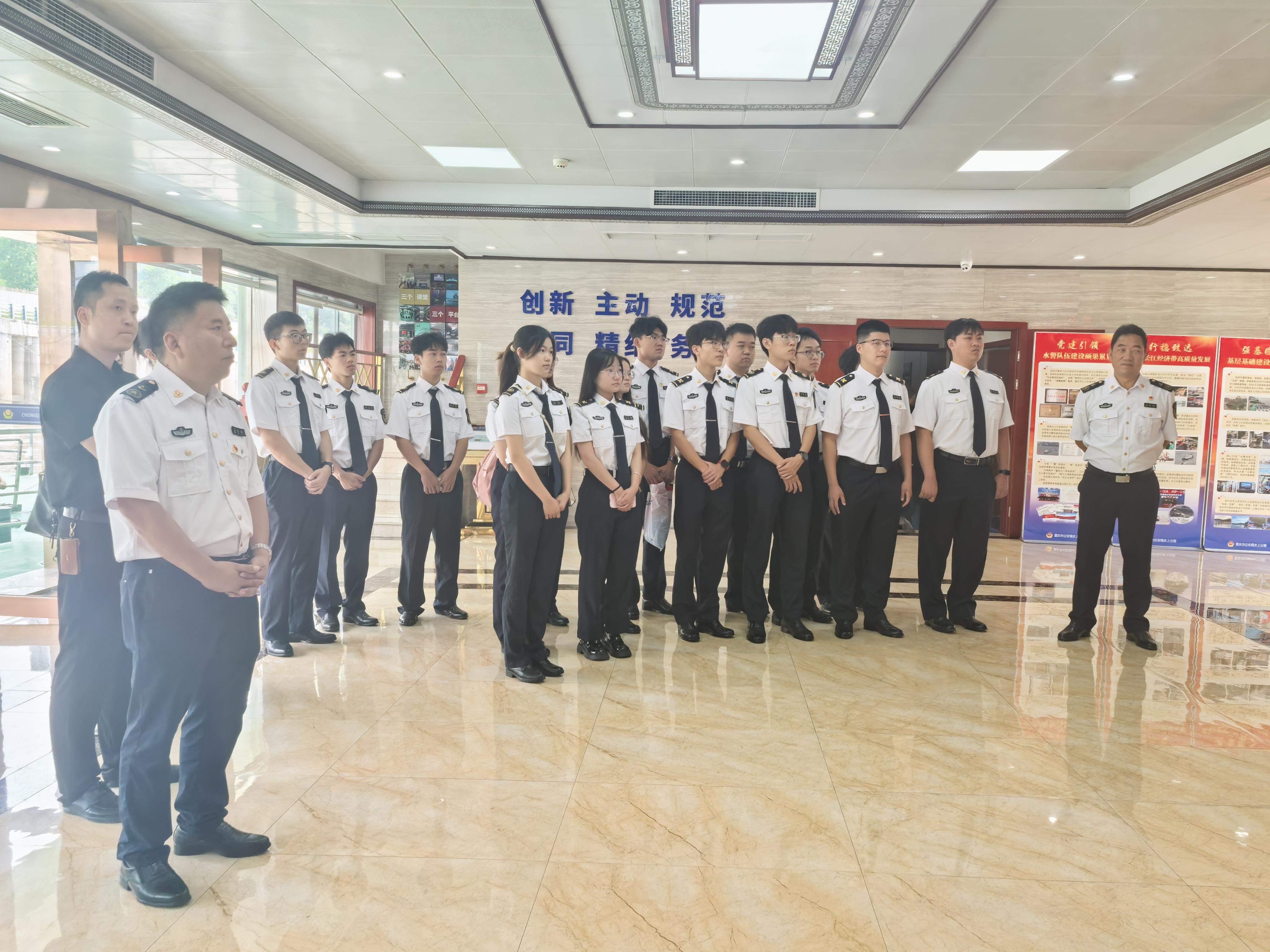2025年7月8日,2024级“郑和班”同学在公司党委书记周德贵、经理盛进路的带领下,走进重庆市公安局水上分局开展第三学期实践教学活动。此次活动以警务装备实操、水上救援设备研学、警务案例深度研讨为载体,推动航海安全理论与警务实践深度耦合,既为“郑和班” 学子打造了沉浸式职业启蒙课堂,更为公司第三学期 “产教融合、实战育人” 的改革探索增添了生动实践注脚。
