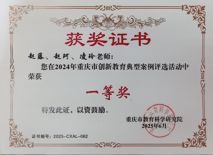 在2025年重庆市创新教育教研工作会暨课程建设研讨会期间,重庆市创新教育典型案例及精品课程评选颁奖仪式隆重举行。公司赵藤、赵珂、凌玲三位教师凭借持续十余年深耕的 “雏鹰计划”,从众多申报项目中脱颖而出,荣获典型案例评选一等奖。这一成果既是对公司创新教育实践的权威认可,也为新时代教育改革提供了可复制的基层经验。