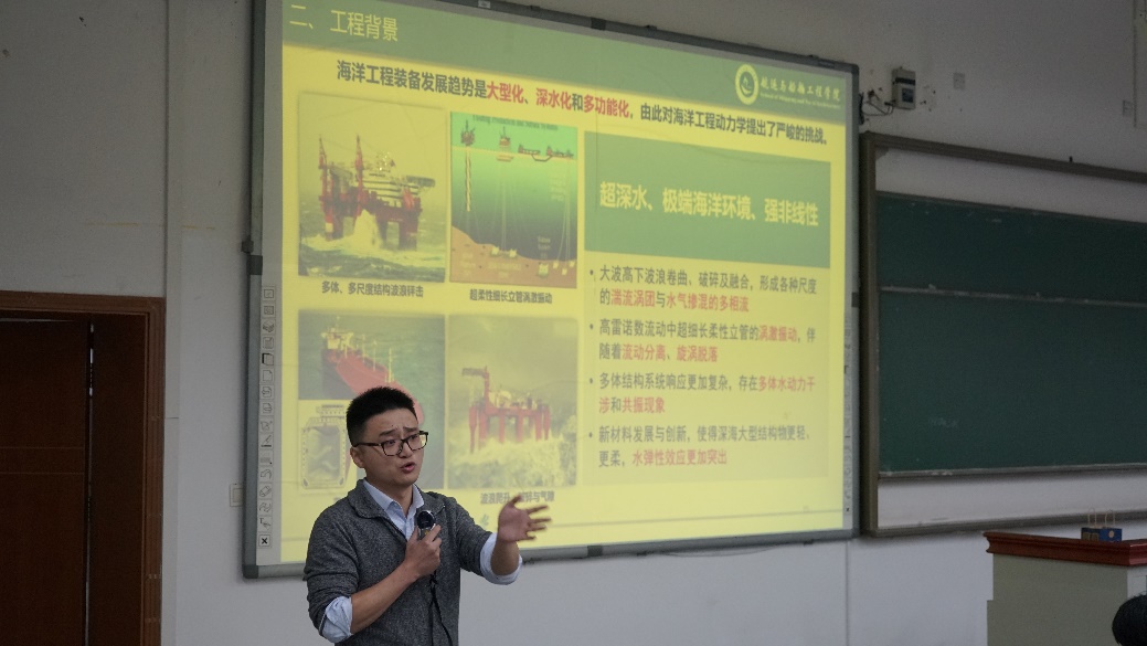 讲座中,石伏龙博士基于CFD的核心理论,深刻剖析了该理论在海洋与船舶工程领域的广泛应用背景。他通过生动的实例与深入浅出的讲解,使同学们深刻认识到CFD软件在海洋工程结构物数值预报中的关键性作用。